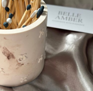 As a mom of two little boys, I wanted to design pieces that bring balance — moments of peace, warmth, and elegance — into everyday life. What began as a personal passion for handmade candles and décor soon grew into a brand built on thoughtfulness, simplicity, and timeless style. Each candle, décor piece, and gift set is crafted with care, inspired by the idea that even the smallest details can make a home feel special. Guided by the motto “Illuminate with Elegance” Belle Amber combines minimalistic design with personal touches, offering not just products, but meaningful keepsakes that celebrate life’s moments.
